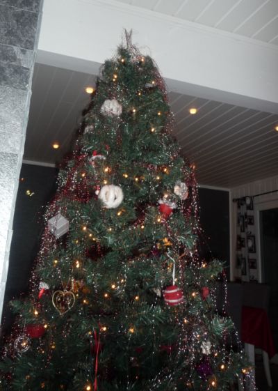 Nyttårsaften (31.12.2013) var vi invitert på nyttårsmiddag hjemme til et vennepar av oss og de 3 ungene deres. Her er det kjempefine juletreet til venneparet vårt 🙂