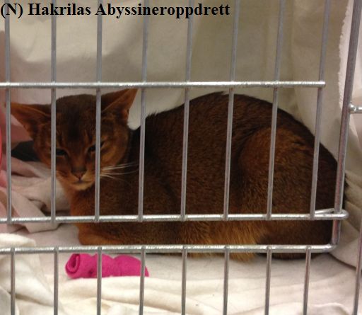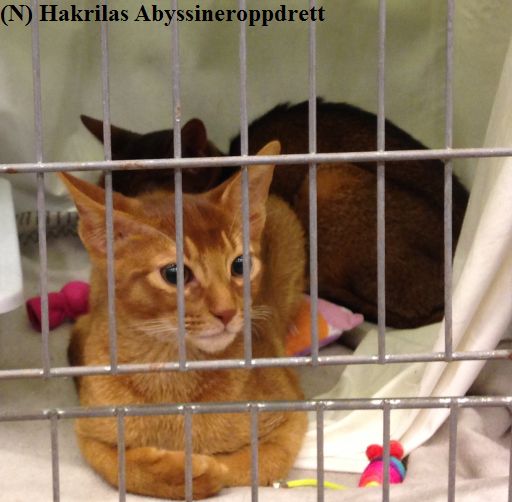 Ja Elvis er et sjarmtroll som du sier, og en frekk liten banditt som dommeren på lørdag kalte ham 🙂 Du skulle sett ham på søndag. Han herjet og gjorde akrobatiske krumspring i buret, og det vakte latter for publikum som gikk forbi 🙂 På dommerbordet var han kjempeivrig med en fjærleke. Dommerne synes det er kjempegøy når en abyssiner tuller og tøyser på dommerbodet 🙂