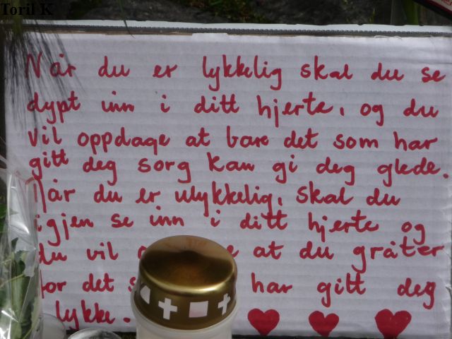 I går gikk tankene mine til alle de pårørende som mistet sine kjære i Regjeringskvartalet og på Utøya, de som selv opplevde terrorangrepet på kroppen, de frivillige fra Utøya Camping som hjalp livredde ungdommer i land når de flyktet fra Utøya og redningsmannskapene som var i Regjeringskvartalet <3 <3 <3